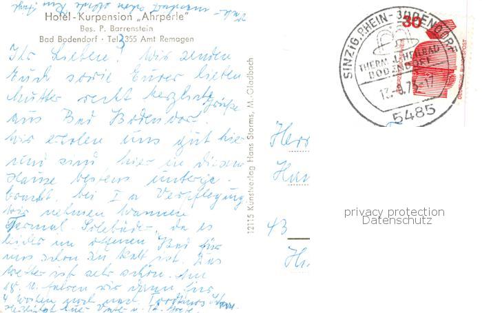 73802146 alte Postkarte Bad Bodendorf Hotel Kurpension Ahrperle postalisch gelaufen Erhaltung siehe scans [FriedD77] KatCode: 11110007131077