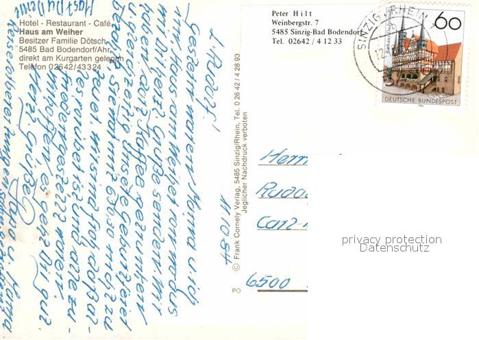72845127 alte Postkarte Bad Bodendorf Kurhotel Haus am Weiher postalisch gelaufen Erhaltung siehe scans [PaolaD17] KatCode: 11110007131077