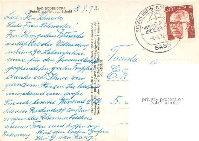 73719518 alte Postkarte Bad Bodendorf Ortszentrum mit Kirche postalisch gelaufen Fliegeraufnahme Erhaltung siehe scans [FriedD77] KatCode: 11110007131077