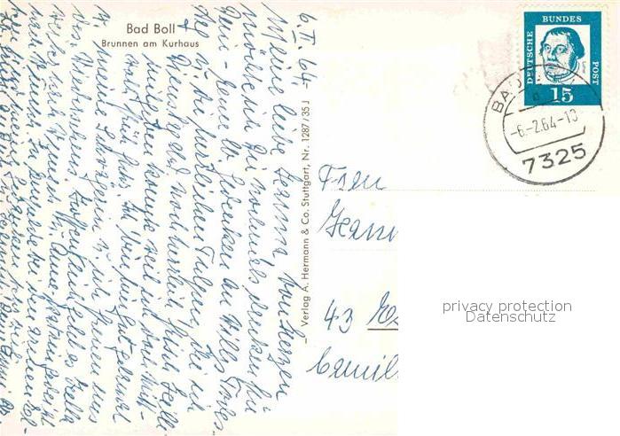 72654791 alte Postkarte Bad Boll Brunnen am Kurhaus postalisch gelaufen Erhaltung siehe scans [AndreD76] KatCode: 11110008117012