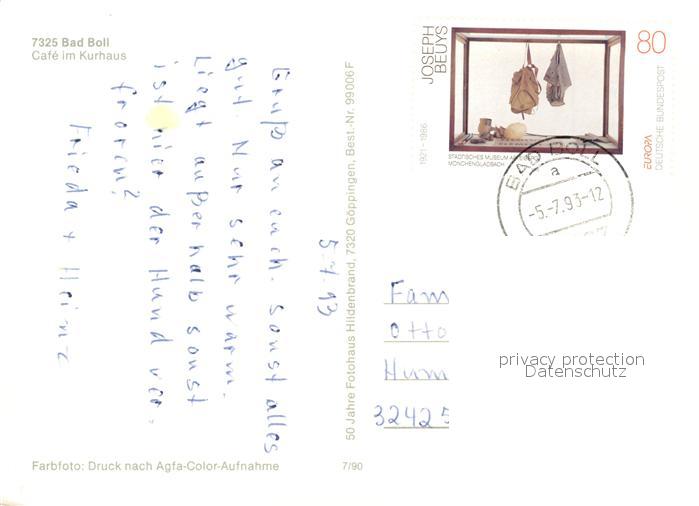 73019200 alte Postkarte Bad Boll Cafe im Kurhaus postalisch gelaufen Erhaltung siehe scans [WerneD78] KatCode: 11110008117012