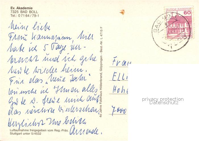 73177047 alte Postkarte Bad Boll Evangelische Akademie Fliegeraufnahme postalisch gelaufen Erhaltung siehe scans [NatalD47] KatCode: 11110008117012
