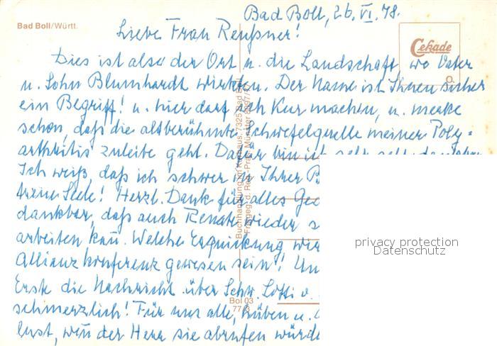 73686079 alte Postkarte Bad Boll Fliegeraufnahme postalisch gelaufen Erhaltung siehe scans [WerneD78] KatCode: 11110008117012