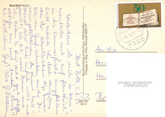 72953500 alte Postkarte Bad Boll Fliegeraufnahme postalisch gelaufen Erhaltung siehe scans [FriedD77] KatCode: 11110008117012