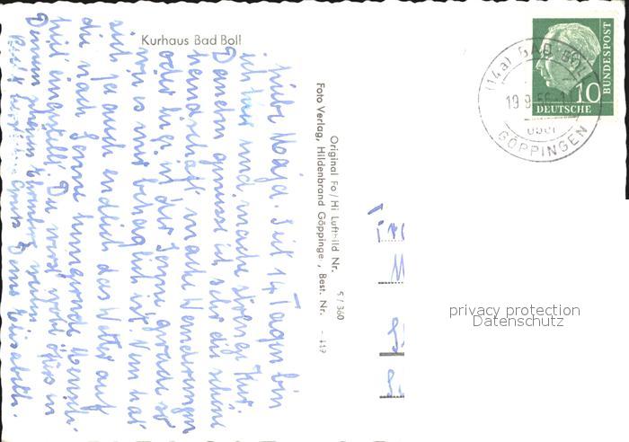 alte Postkarte Bad Boll Fliegeraufnahme postalisch gelaufen Erhaltung siehe scans
