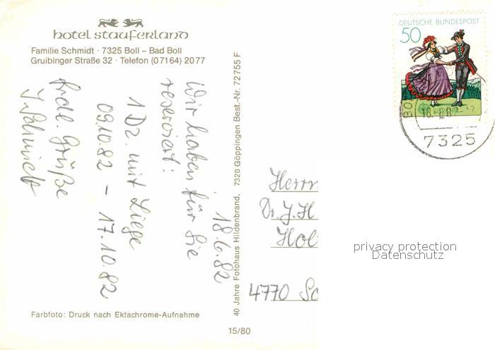 72761853 alte Postkarte Bad Boll Hotel Stauferland postalisch gelaufen Erhaltung siehe scans [FriedD77] KatCode: 11110008117012
