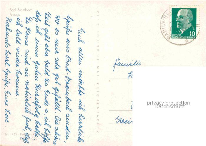 72631531 alte Postkarte Bad Brambach Festhalle postalisch gelaufen Erhaltung siehe scans [LiesaD40] KatCode: 11110014178040