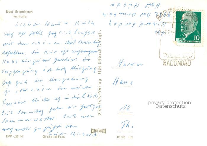 73135511 alte Postkarte Bad Brambach Festhalle postalisch gelaufen Erhaltung siehe scans [NatalD47] KatCode: 11110014178040