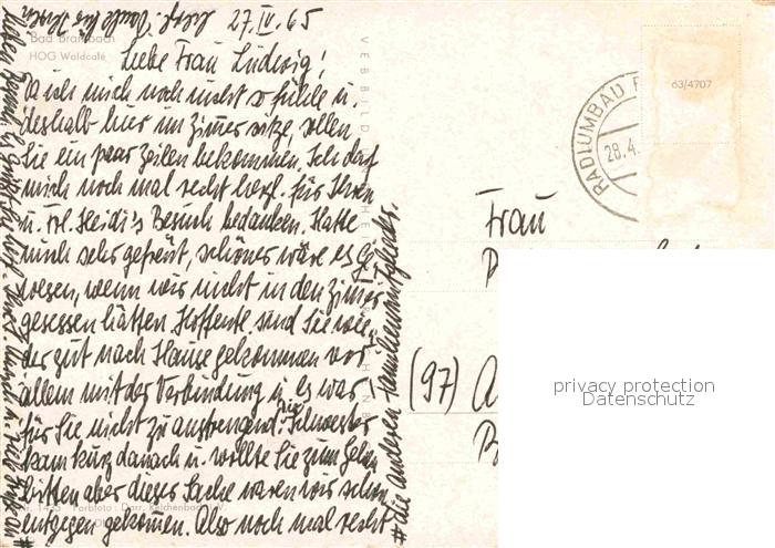 72650964 alte Postkarte Bad Brambach HOG Waldcafe postalisch gelaufen Erhaltung siehe scans [FriedD77] KatCode: 11110014178040