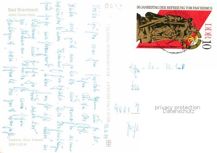 72751401 alte Postkarte Bad Brambach Joliot Curie Haus postalisch gelaufen Erhaltung siehe scans [KathaD81] KatCode: 11110014178040
