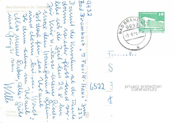 72727799 alte Postkarte Bad Brambach Joliot Curie Haus postalisch gelaufen Erhaltung siehe scans [LiesaD40] KatCode: 11110014178040