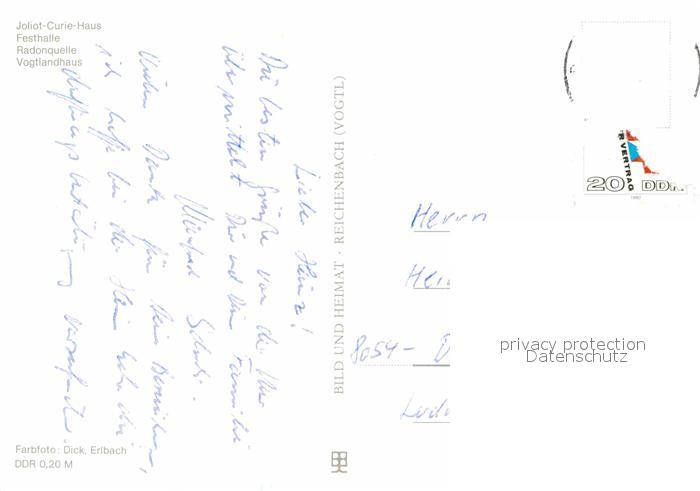 72631659 alte Postkarte Bad Brambach Joliot-Curie-Haus Festhalle Radonquelle Vogthlandhaus postalisch gelaufen Erhaltung siehe scans [LiesaD40] KatCode: 11110014178040