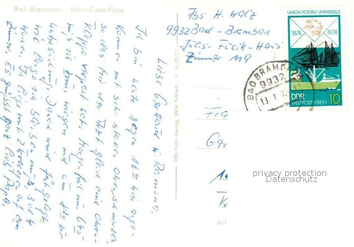 73295029 alte Postkarte Bad Brambach Joliot-Curie-Haus postalisch gelaufen Erhaltung siehe scans [PaolaD17] KatCode: 11110014178040