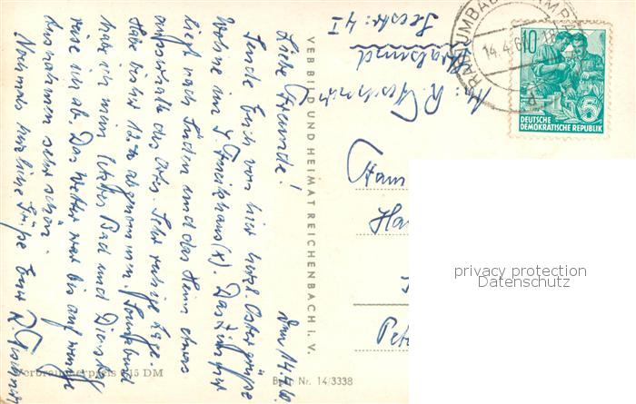 73750595 alte Postkarte Bad Brambach Julius Fucik Haus Festhalle Kurhof Vogtlandhaus postalisch gelaufen Erhaltung siehe scans [WerneD78] KatCode: 11110014178040