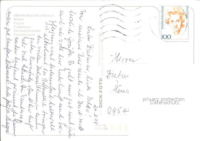 72382185 alte Postkarte Bad Brambach Klinik Foyer Cafeteria postalisch gelaufen Erhaltung siehe scans KatCode: 11110014178040