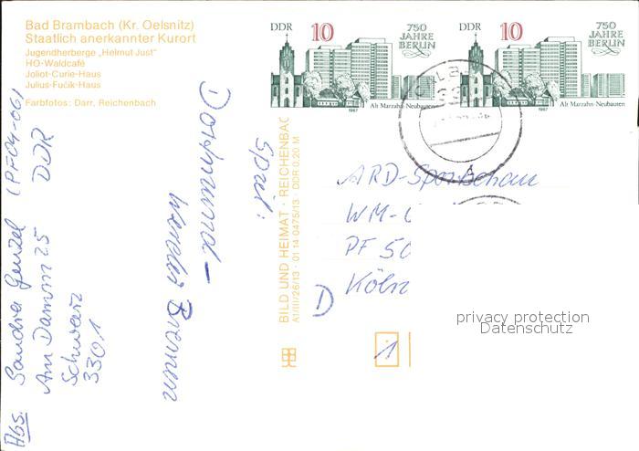 72461661 alte Postkarte Bad Brambach Kurort Ho Waldcafe Joliot Curie Haus postalisch gelaufen Erhaltung siehe scans KatCode: 11110014178040