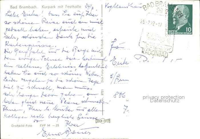 72404790 alte Postkarte Bad Brambach Kurpark mit Festhalle postalisch gelaufen Erhaltung siehe scans KatCode: 11110014178040