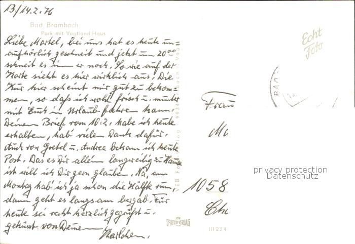 71983157 alte Postkarte Bad Brambach Park Vogtland Haus postalisch gelaufen Erhaltung siehe scans KatCode: 11110014178040