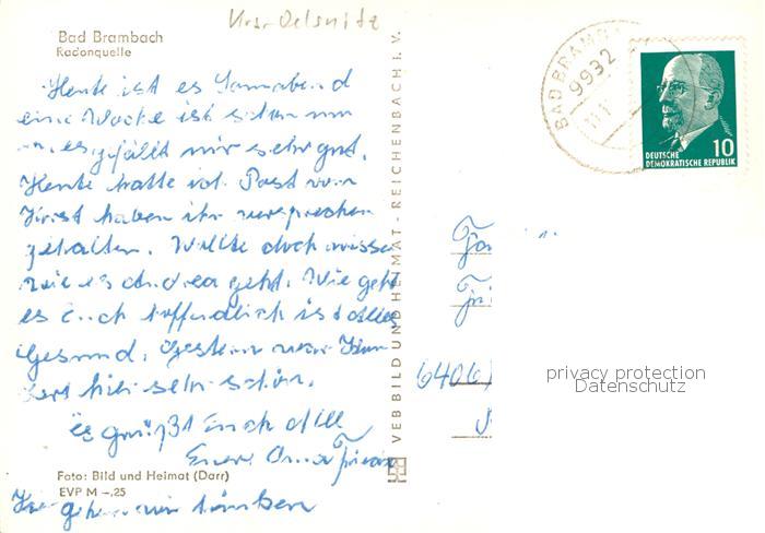 73753863 alte Postkarte Bad Brambach Radonquelle postalisch gelaufen Erhaltung siehe scans [FriedD77] KatCode: 11110014178040