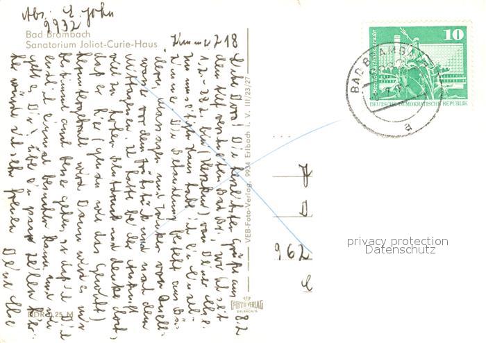73094901 alte Postkarte Bad Brambach Sanatorium Joliot Curie Haus postalisch gelaufen Erhaltung siehe scans [KathaD81] KatCode: 11110014178040