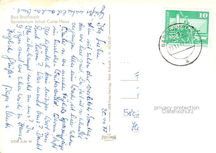 73071574 alte Postkarte Bad Brambach Sanatorium Joliot Curie Haus postalisch gelaufen Erhaltung siehe scans [WerneD78] KatCode: 11110014178040