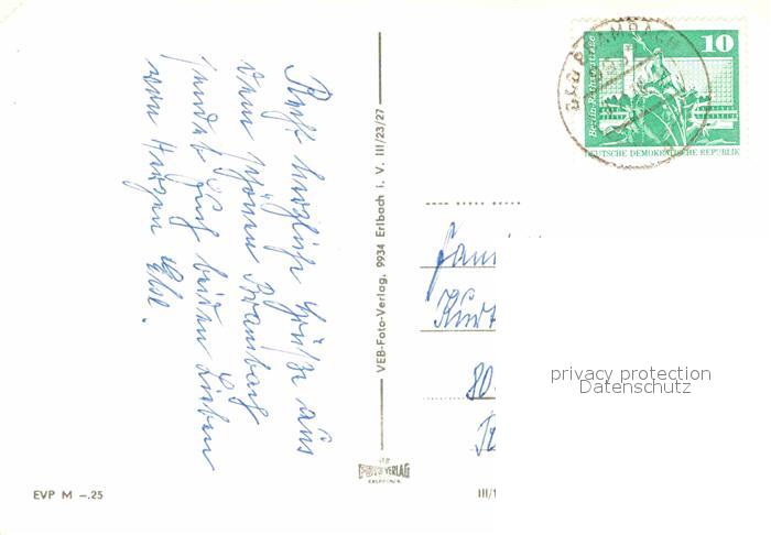 72634317 alte Postkarte Bad Brambach Sanatorium Joliot Curie Vogtlandhaus Radonquelle Fuick Heim Festhalle Schiller Quelle postalisch gelaufen Erhaltung siehe scans [AndreD76] KatCode: 11110014178040