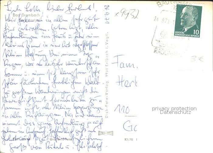 72318773 alte Postkarte Bad Brambach Sorgebachtal postalisch gelaufen Erhaltung siehe scans KatCode: 11110014178040