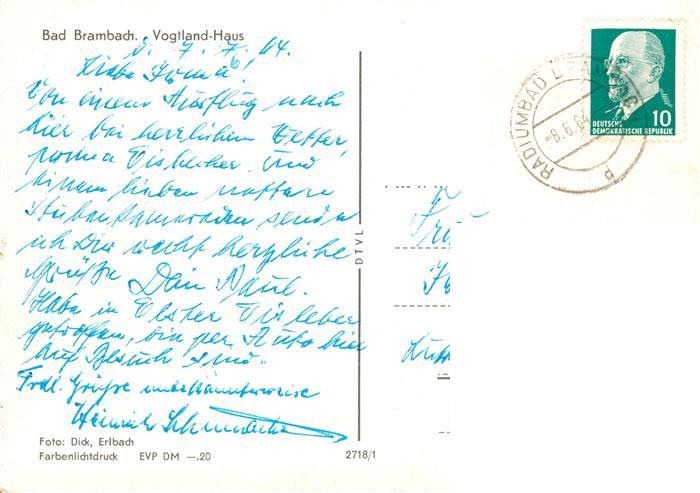 73905497 alte Postkarte Bad Brambach Vogtland Haus Park postalisch gelaufen Erhaltung siehe scans [FriedD77] KatCode: 11110014178040