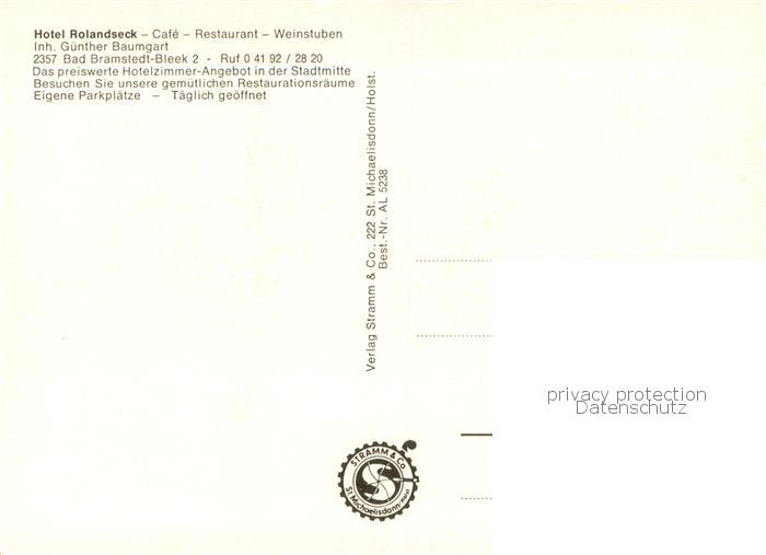 73763929 Bad Bramstedt Hotel Rolandseck Cafe Restaurant postalisch nicht gelaufen Erhaltung siehe scans [FriedD77] KatCode: 11110001060004
