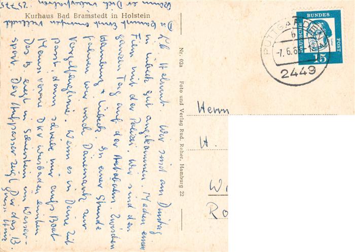 73907984 alte Postkarte Bad Bramstedt Kurhaus postalisch gelaufen Erhaltung siehe scans [WerneD78] KatCode: 11110001060004
