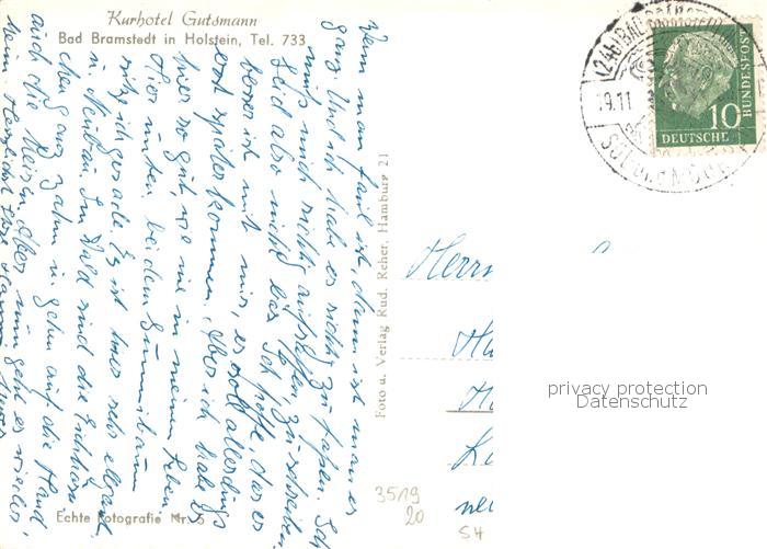 73768591 alte Postkarte Bad Bramstedt Kurhotel Gutsmann postalisch gelaufen Erhaltung siehe scans [WerneD78] KatCode: 11110001060004