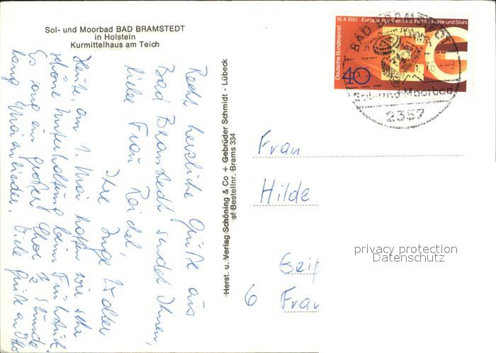72592682 alte Postkarte Bad Bramstedt Kurmittelhaus am Teich Solbad Moorbad postalisch gelaufen Erhaltung siehe scans [FriedD77] KatCode: 11110001060004
