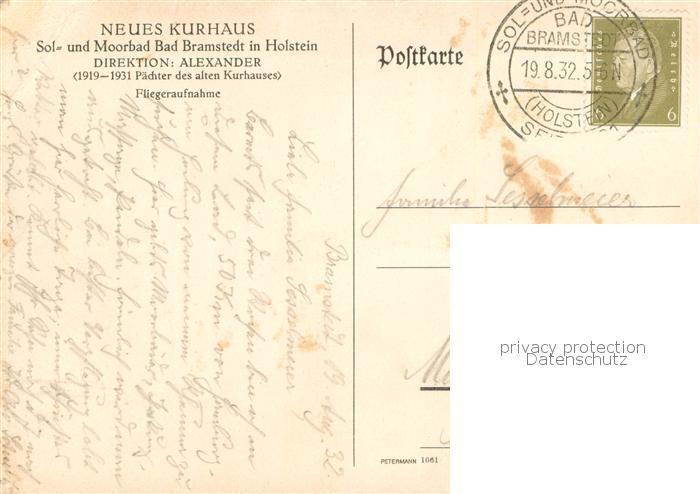 73768649 alte Postkarte Bad Bramstedt Neues Kurhaus Fliegeraufnahme postalisch gelaufen Erhaltung siehe scans [WerneD78] KatCode: 11110001060004