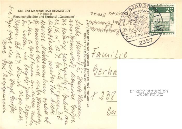 73229738 alte Postkarte Bad Bramstedt Rheumaheilstaette Kurhotel Gutsmann Fliegeraufnahme postalisch gelaufen Erhaltung siehe scans [FriedD77] KatCode: 11110001060004