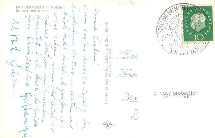 73669904 alte Postkarte Bad Bramstedt Roland und Kirche postalisch gelaufen Erhaltung siehe scans [WerneD78] KatCode: 11110001060004