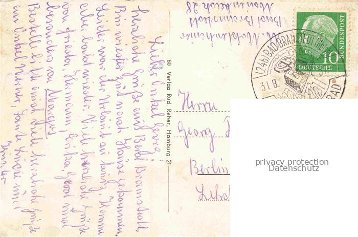 74104722 alte Postkarte Bad Bramstedt Schleswig-Holstein Brunnen Musikpavillon Am Markt Ansicht mit Kirche postalisch gelaufen Erhaltung siehe scans [FriedD77] KatCode: 11110001060004