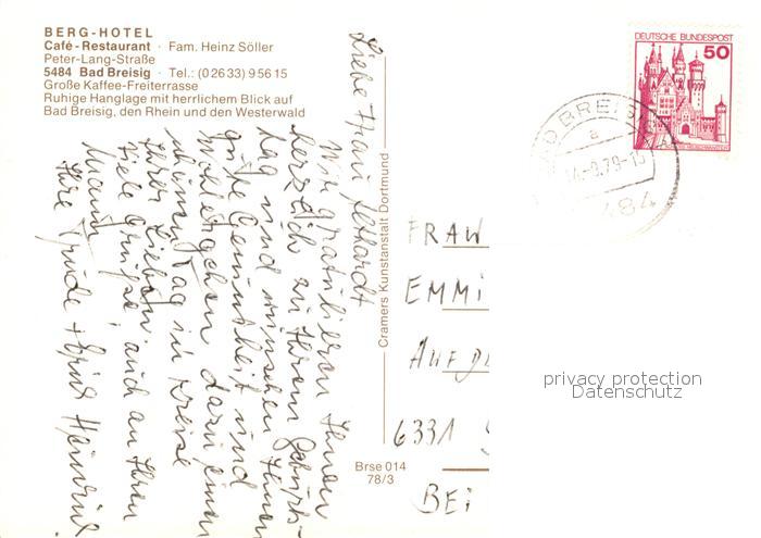 73147235 alte Postkarte Bad Breisig Berghotel Cafe Restaurant Terrasse postalisch gelaufen Erhaltung siehe scans [FriedD77] KatCode: 11110007131006