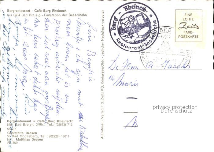 72429797 alte Postkarte Bad Breisig Bergrestaurant Cafe Burg Rheineck postalisch gelaufen Erhaltung siehe scans KatCode: 11110007131006