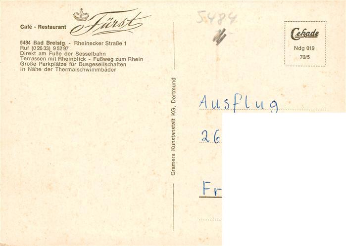 73894882 Bad Breisig Cafe Restaurant Fuerst Gastraum postalisch nicht gelaufen Erhaltung siehe scans [FriedD77] KatCode: 11110007131006