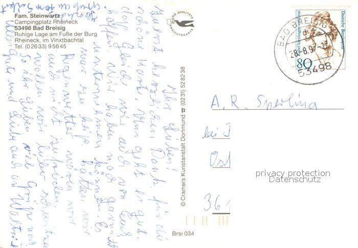73677594 alte Postkarte Bad Breisig Campingplatz Rheineck Panorama Burg Rheineck postalisch gelaufen Erhaltung siehe scans [WerneD78] KatCode: 11110007131006