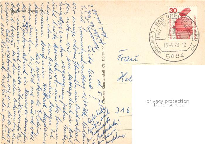 73663726 alte Postkarte Bad Breisig Fliegeraufnahme postalisch gelaufen Erhaltung siehe scans [LiesaD40] KatCode: 11110007131006
