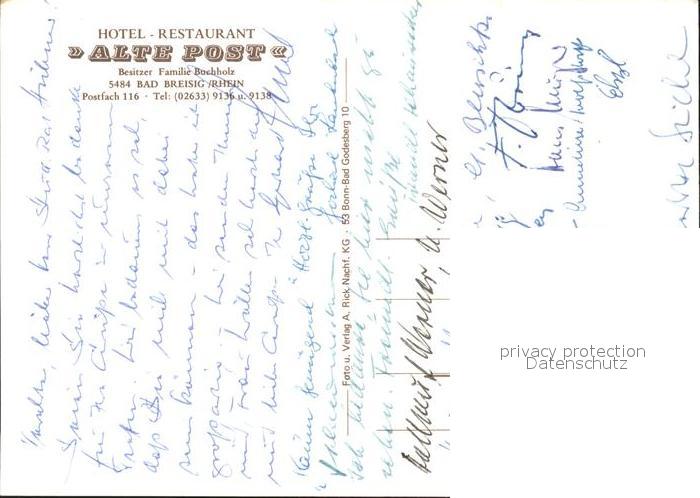 72303152 Bad Breisig Hotel Restaurant Alte Post postalisch nicht gelaufen Erhaltung siehe scans KatCode: 11110007131006