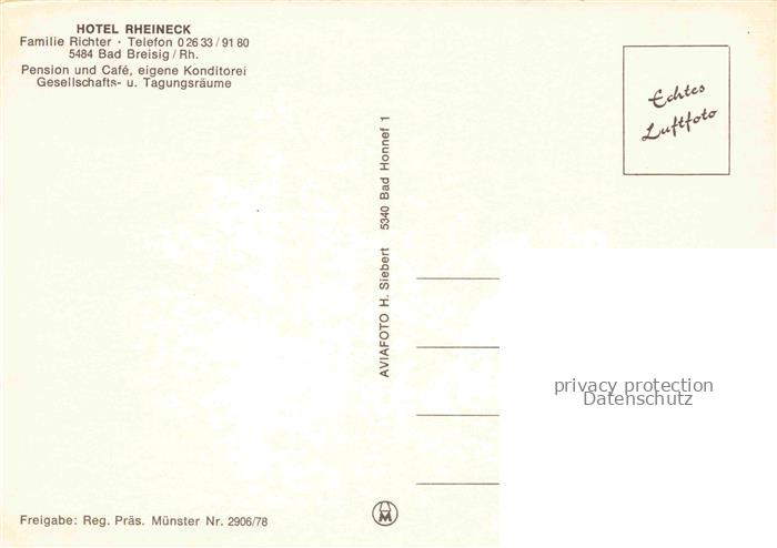 74085062 Bad Breisig Hotel Rheineck Fliegeraufnahme postalisch nicht gelaufen Erhaltung siehe scans [WerneD78] KatCode: 11110007131006