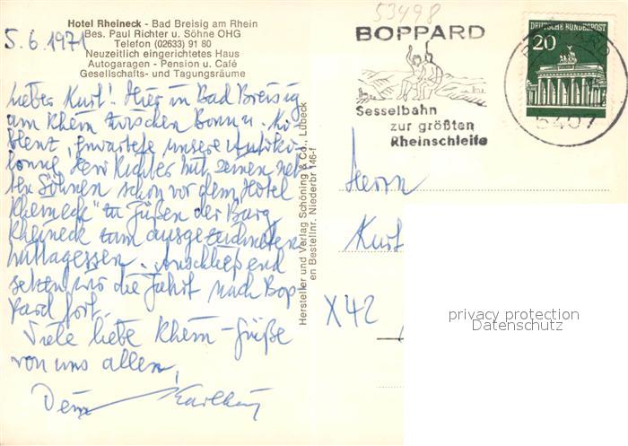 73570106 alte Postkarte Bad Breisig Hotel Rheineck Restaurant Terrasse postalisch gelaufen Erhaltung siehe scans [FriedD77] KatCode: 11110007131006