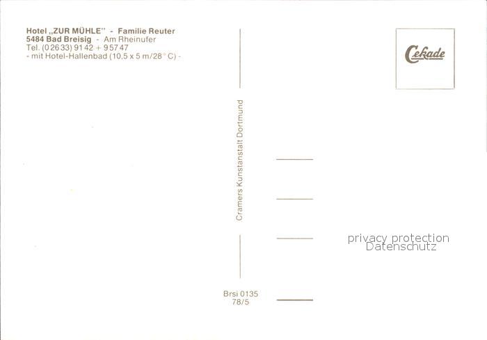 71930095 Bad Breisig Hotel zur Muehle postalisch nicht gelaufen Erhaltung siehe scans KatCode: 11110007131006