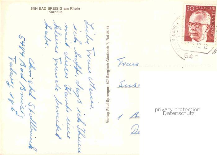 72913977 alte Postkarte Bad Breisig Kurhaus postalisch gelaufen Erhaltung siehe scans [KathaD81] KatCode: 11110007131006