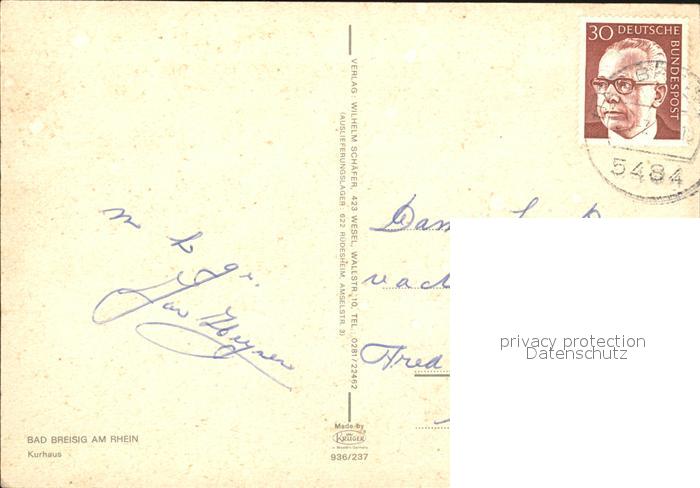 72582060 alte Postkarte Bad Breisig Kurhaus postalisch gelaufen Erhaltung siehe scans [WerneD78] KatCode: 11110007131006