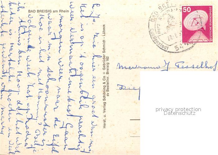 72929773 alte Postkarte Bad Breisig Panorama postalisch gelaufen Erhaltung siehe scans [WerneD78] KatCode: 11110007131006