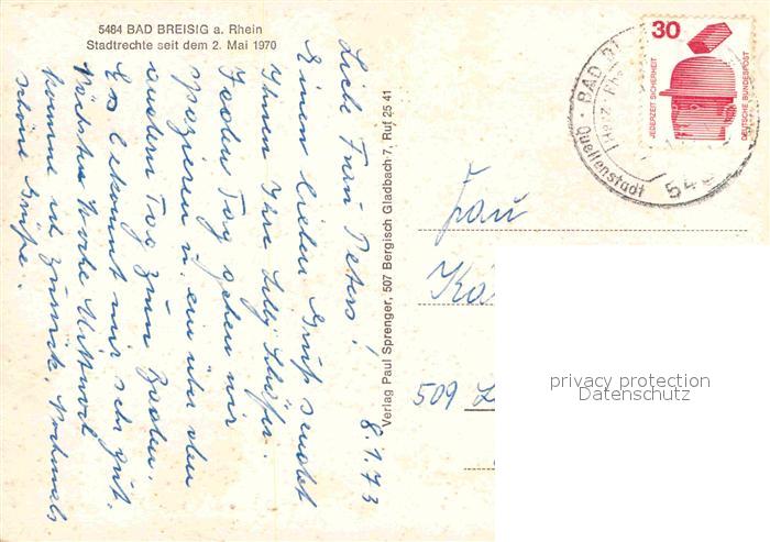 72767165 alte Postkarte Bad Breisig Rheinufer Burg Rheineck Heilbaederhaus Rheinpartie Thermalbad postalisch gelaufen Erhaltung siehe scans [WerneD78] KatCode: 11110007131006