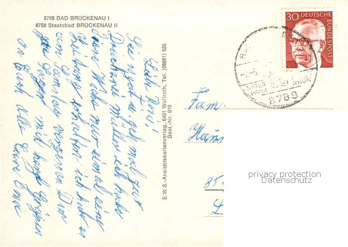73842278 alte Postkarte Bad Brueckenau Altstadt Schwimmbad Stadtmitte Ludwigstr Kurhotel Park Anlage Koenig Ludwig Quelle postalisch gelaufen Erhaltung siehe scans [WerneD78] KatCode: 11110009672113